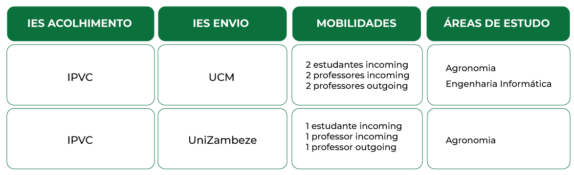 No contexto da sua internacionalização, o Instituto Politécnico de Viana do Castelo (IPVC) está apostado em intensificar as atividades de internacionalização da instituição, participando no Programa Mobilidade ProCTEM+ financiado pelo Programa Erasmus+ KA171 ICM acolhendo estudantes e professores da Universidade Católica de Moçambique (UCM) e Universidade Zambeze (UniZambeze) e enviando professores para essa mesma Instituição de Ensino Superior na área da Agronomia e Engenharia Informática.